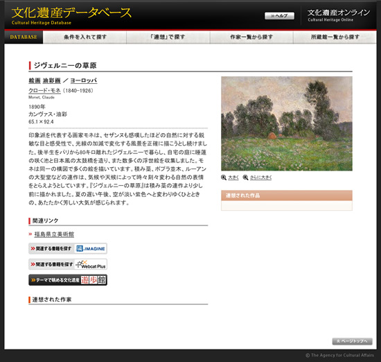 「条件を入れて探す」の検索結果として、その所蔵館の所蔵する作品一覧が表示されます。
