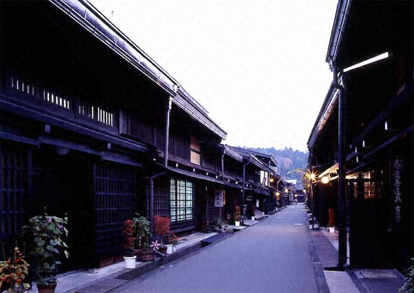 古くから飛騨の中心地で、江戸中期以降は幕府直轄地となり、近世から商業活動で繁栄した。狭い通りを挟んで、軒の低い洗練された意匠の町家が連なっている。町家は中二階建で緩い勾配の屋根とし、深い軒をもち、胡粉塗の腕木や、通り土間上部の生漆塗の梁組は見応えがある。平成9年に保存地区の範囲が拡大され、敷地奥の土蔵の保存も進められている。
