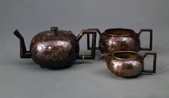 ポット: h8.0 D19.5 ; 砂糖入れ: h7.0 D16.0 ; ミルク差し: h5.0 D12.0