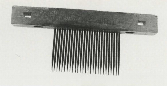 歯杵の長さ18.0cm 直径0.8cm。歯杵列の基部の幅28.5cm。歯杵数27。台木の長さ61.0cm 幅8.0cm 厚さ5.0cm。歯杵の断面は円形。