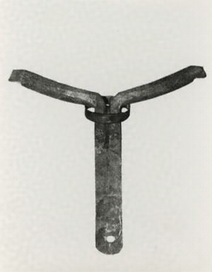鉢巻きとして堀上げた植木の仮の支柱として使用。マタの部分には藁縄を巻き、樹皮の損傷を防止する。柄の長さは180.0cmとする。価格1200円。