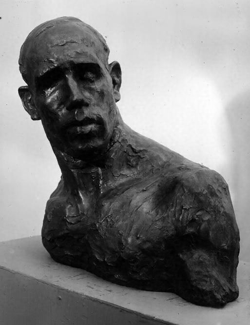 明治37年春のサロンでロダンの「考える人」をみて感動し、絵画から彫刻を志向しはじめた荻原は、再渡仏した同40年の末頃、アカデミー・ジュリアンでイタリア人をモデルに、これを作った。彫刻に転じて1年余りでこれだけの作品が生まれたのは驚くほかないが、ロンドンからたまたまパリを訪れた友人高村光太郎は、研究所で粘土のこの像をみて感心し、是非石膏にとるようにすすめた。「女の胴」とともに日本にもち帰った荻原初期の代表作である。頭から頚、肩、胸へかけての各部の塊の構成と、それらの動勢に生き生きと緊張した美しさは、日本にはじめて近代彫刻の本質が何であるかを具体的に示した。この作を第2回文展に出品した際、これより欠陥の多い「文覚」が受賞したのに、「坑夫」と「女の胴」は未完成を理由に落選になったというエピソードがある。したがってこれが展観されたのは翌年の第7回太平洋画会展であった。荻原守衡は長野県の生まれ、号を碌山。絵画を志して上京し、不同舎に学んだのち明治34年渡米、36年渡仏して口ダンに触発され彫刻をはじめた。41年イタリア、エジプトを経て帰国、文展初期に「文覚」(第2回)、「北条虎吉像」「労働者」(第3回)、「女」(絶作、第4回)と、生命感にあふれる作品を続々発表して活躍した。高村光太郎とともに日本に近代彫刻の扉をひらき、大きな影響を与えたが、帰国後わずか2年で夭折したのが惜しまれる。