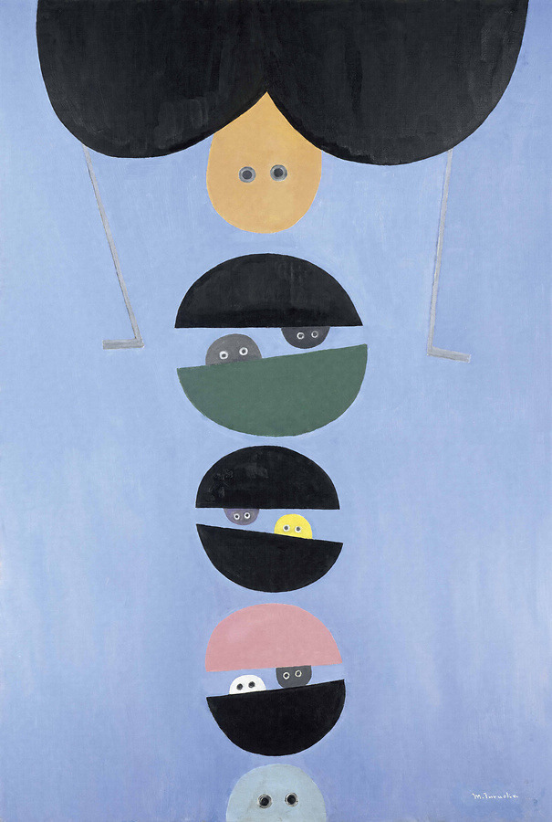 群馬県高崎市に生まれた鶴岡政男は、1930年に井上長三郎や靉光らとNOVA美術協会を結成し、1943年には新人画会の結成に参加。戦後は自由美術展、美術団体連合展、日本アンデパンダン展などに戦後の混乱した世の中を映し出す作品を発表した。時代や社会と深くかかわりながら、その画風をめまぐるしく変貌させてきた鶴岡は、1965年以降、柔らかな曲線とくっきりとした色面を用いた作品をつくり出していく。