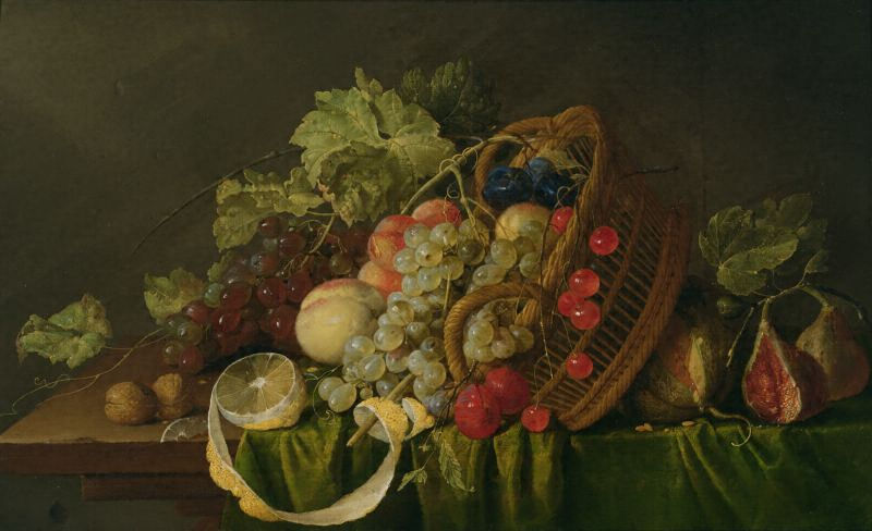 果物籠のある静物