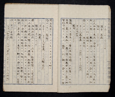 シーボルトに西洋植物学を学んだ伊藤圭介が自著「救荒食物便覧」(天保7年著)や実験をもとに、その他、諸書を参考にしながら、「賀来飛霞ノ増補ヲも加へ」て、明治17年(1884)にまとめ著したもの。全部で123種の植物について、科名・方言・漢名・洋名、色、形態の特徴、植生、調理方法などが記されている。本書は、「文部省報告官報」として刊行された同名書の下書き、もしくはその写しとみられ、豊前・豊後の方言が多く記入されていることや、当時伊藤圭介が82歳の高齢であったことから、実際の執筆には飛霞が深く関わっていたものとみられる。