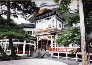 外国人の宿泊を意識して,全体に洋風の意匠を基調にしながら内外の要所に和風の意匠を加味した特異な建物。正面中央に唐破風屋根の玄関ポーチ,左右に八角平面の突出部をつくり正面性を強調した左右対称の外観に特徴がある。工事請負は河原兵次郎。
