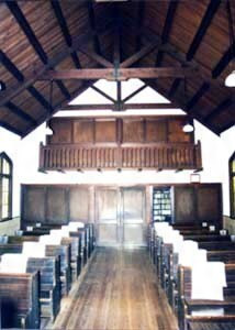 大津市の北方,堅田地区に建つ教会で,ヴォーリズ建築事務所の設計になる。単廊式の会堂で,会堂部にはキングポストの簡潔な小屋組を顕わす。正面中央上部にチューダーアーチの4連窓を開け,右手にトンガリ屋根の角塔をあげて特徴的な外観を造りあげている。