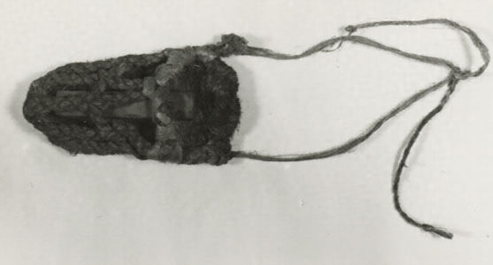 1969年3月寄贈。津金積。草履の台を粗材として製作し、砥石を入れて腰に縛る。
