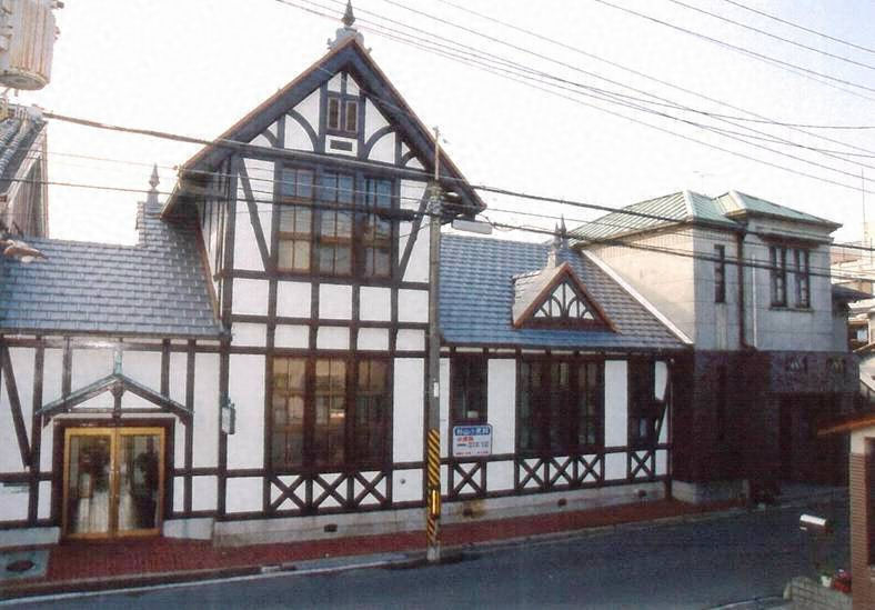 街路に北面して建ち,西に居住棟が続く。東西棟の切妻造,平入,平屋建で,中央部は棟が直交した2階建として外壁を立ち上げる。外観はハーフティンバースタイルで,屋根窓や玄関庇など変化に富む。伝統的な町並みにあって,ランドマーク的存在。