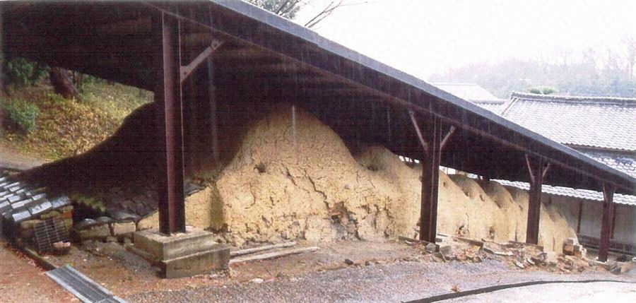 敷地北側の傾斜地を利用して南北方向に築かれる。2連の胴木間と8房の焼成室が連なり最上部に煙道を設ける連房式登窯。奥行18m,幅5.4m,高さ6m規模で,煉瓦造とし,表面を塗土で仕上げる。勾配は3寸,上部で緩勾配に変化。近世に遡る大規模な登窯。