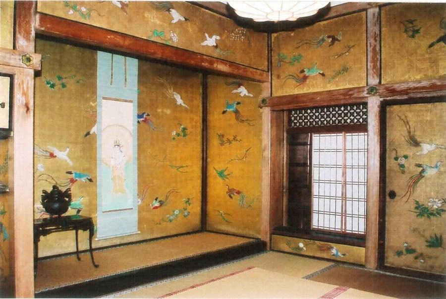 敷地の中央に位置し,本堂の北側に西面して建つ。桁行6間,梁間4間半,木造平屋建,入母屋造,本瓦葺。南東隅に御上段の間を設け格天井とし,北東隅に御座の間等計6室を配する。貼付壁や襖絵等上質で,細部意匠等,書院建築の遺構として貴重である。