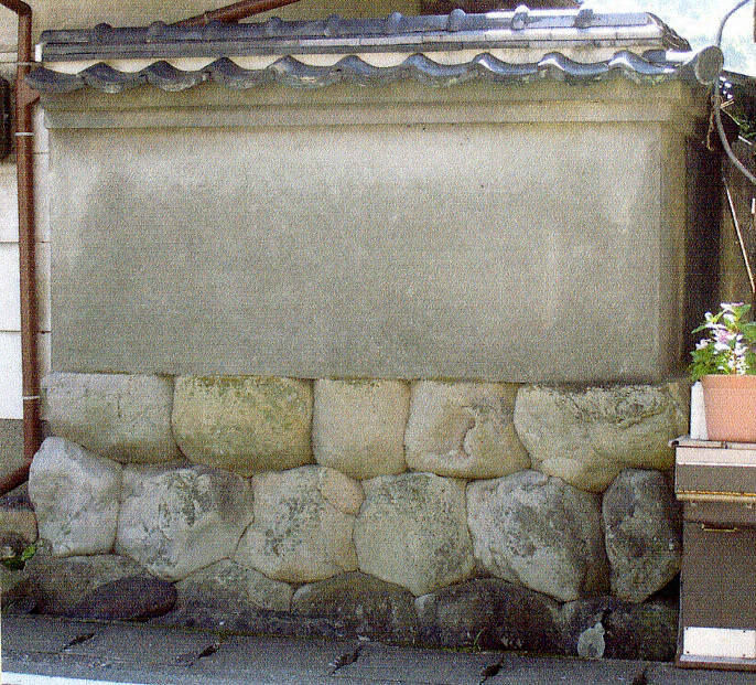 敷地の南西隅を限る塀。西側道路から敷地の南面へ折れ曲がる延長6.0m。基部は大ぶりの浜石を切込み矧ぎで3段積とする。壁体はコンクリート造で、蛇腹2段を造り、頂部には桟瓦を葺く。総高1.8m、基底幅0.6m。街路景観のアクセントとなる。