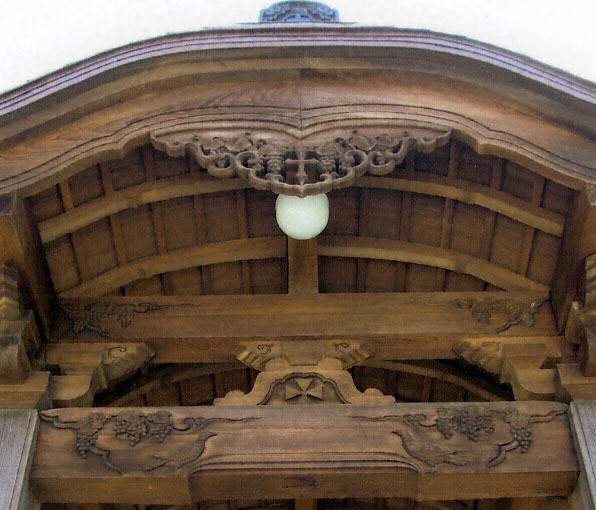 入母屋造妻入桟瓦葺で、正面に唐破風造銅板葺の1間向拝を付けるもと教会礼拝堂。正面3間に桟唐戸をたて、側面前寄り3間は窓を設ける。和風を基調としながら、十字架や葡萄、鳩などをモチーフとした彫刻や金具を施す。昭和初期の和風教会堂として貴重である。