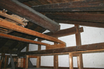 東と北に接道し、東西に細長い敷地の西端に建つ。桁行8.2m梁間5.5mの土蔵造2階建で、東西棟の切妻造金属板葺。東妻面にトマエを付し、掛子塗三段の土扉を中心からずらして吊る。内部は1、2階とも一室。当地域における古い形式の小屋架構を残す。