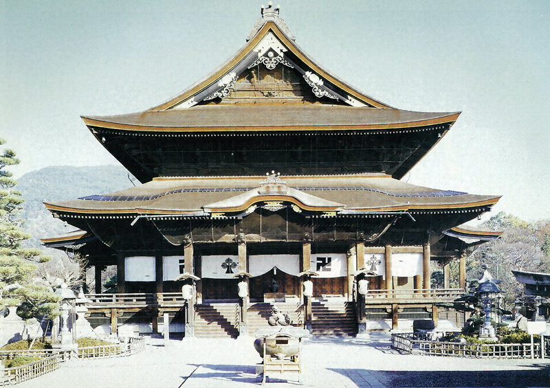 善光寺本堂は、奥行の深い平面を持つ規模の宏壮な建物で、独創的な形状は、仏殿建築として一生面を開いたものと云える。その非凡な設計は德川時代中期に於ける傑作である。