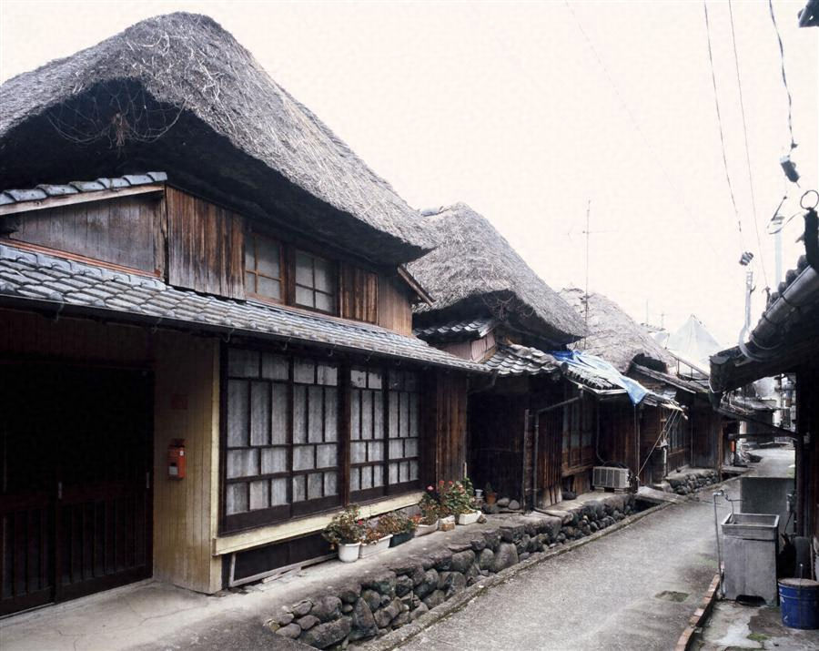 浜庄津町浜金屋町地区は、河港を背景として成立した在郷町であり、近世の地割をよく残すとともに、近世末から近代にかけて建築された茅葺町家と桟瓦葺町家が混在する特色ある歴史的風致を今日によく伝えている。