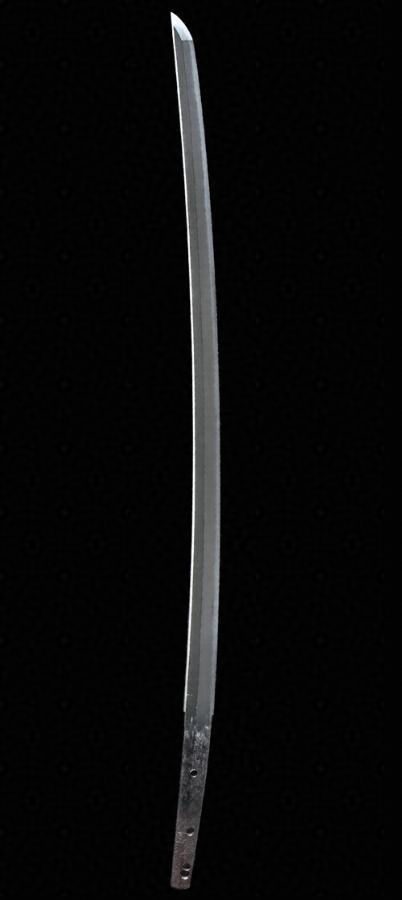 鎬造、庵棟、反り浅く、中鋒。鎬幅狭く、鎬高し。鍛え板目肌流れごころに柾交じり、地沸よくつく。刃文湾れに互の目交じり、砂流しかかり、匂深く、小沸よくつき、所々に金筋かかる。下半表裏とも二重刃ごころとなる。帽子掃きかけ先小丸、沸よくつき金筋かかる。茎磨上、先栗尻、旧鑢目切、目釘孔四、茎先棟寄りに二字銘。