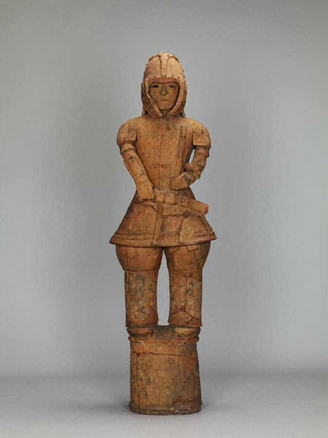 武具を着装し、武器を装備した武人埴輪である。きりっと結んだ口元と、深く切りこまれた目には武人としての気品と風格があり、甲胄を着け、弓や大刀の柄をにぎりしめてその動作を巧みにとらえている。東日本では武人埴輪が多く発見されているが、本埴輪は大きさもあり、各部分の製作もていねいで保存状態もよく、最も優れた作品である。
