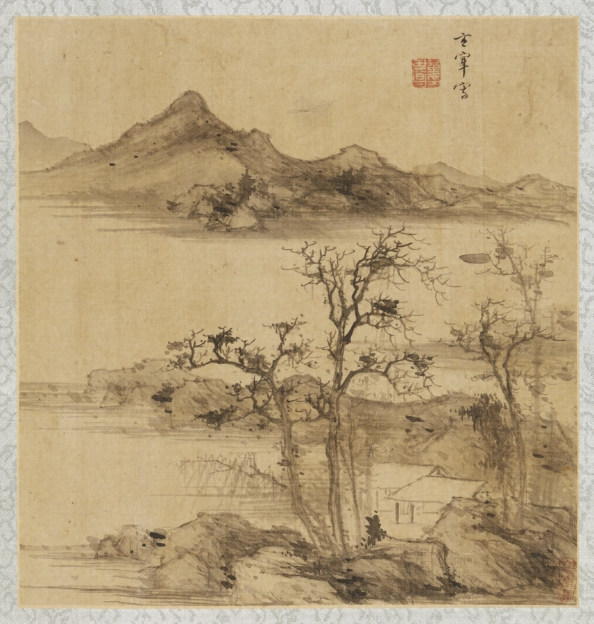 絹本淡彩及墨画山水書画冊〈董其昌筆/〉