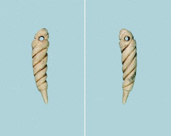 鹿の角製。長さ4.5cm。縄文時代。河北町南境貝塚。
