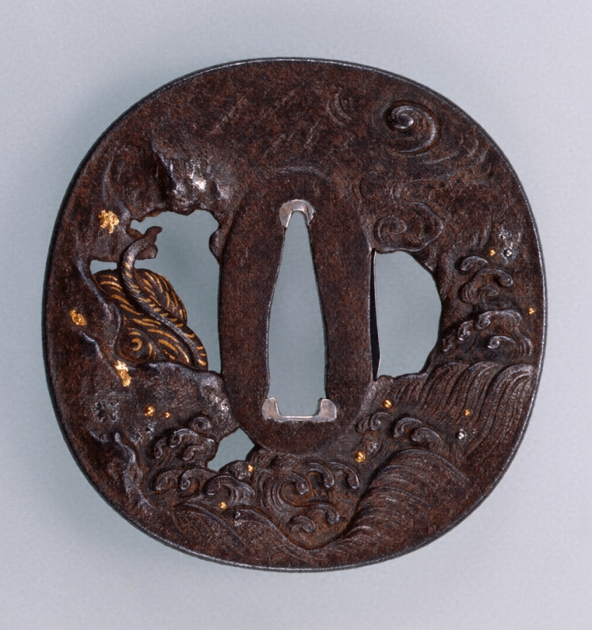 奈良派の利寿は江戸時代中期を代表する名工であるが、鐔の作例は極めて少ない。竜虎は刀装具の題材としてよく用いられるが、本鐔は高りの力強い作で、利寿の特色をよく示している。