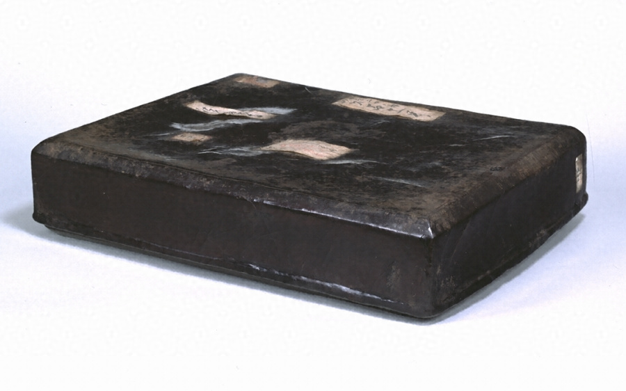 一枚の革で成形し、その上を黒漆で塗った箱である。これはもと法隆寺に伝来し明治十一年献納されたものの一つで、これ以外にも漆皮箱は十二口あり、いずれも重要文化財に指定されている。これは広東幡残闕一括が納入伝来したもので奈良の数少ない貴重なものである。