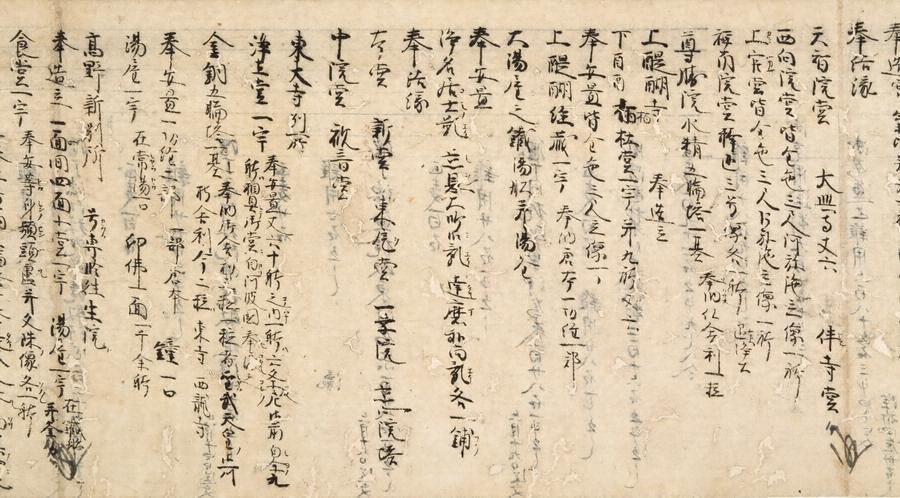 東大寺復興勧進聖、俊乗房重源の作善【さぜん】の事蹟を集めたもので、だいたい建仁二年以前の事蹟が記録されている。本文中諸所に訂正加筆があり、中には建仁三年の追記も見え、おそらく重源の勘案を経た原本と認められる。料紙には建仁三年七月の東大寺知行国備前国麦進未並納所所下惣散用帳の紙背をあてている。共に重源に関する重要な原史料である。