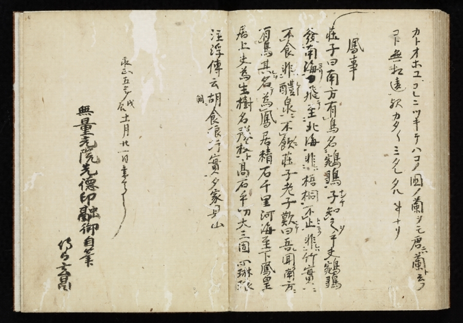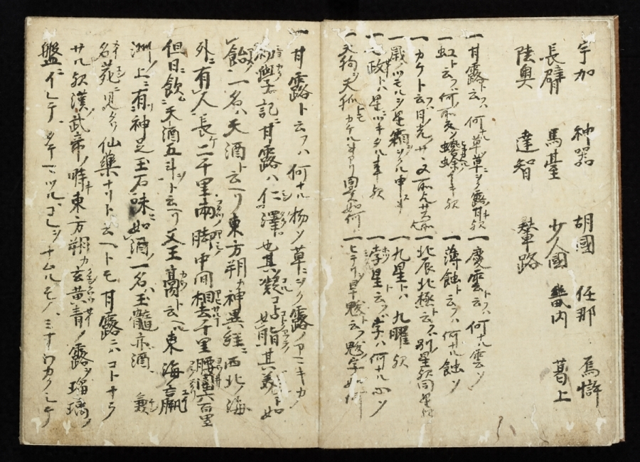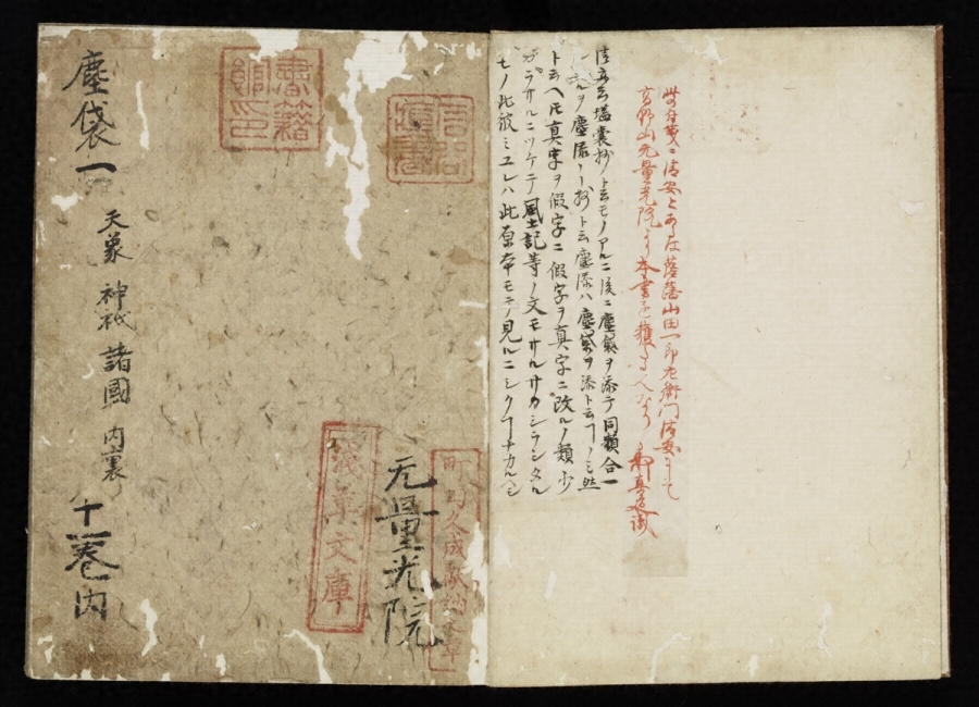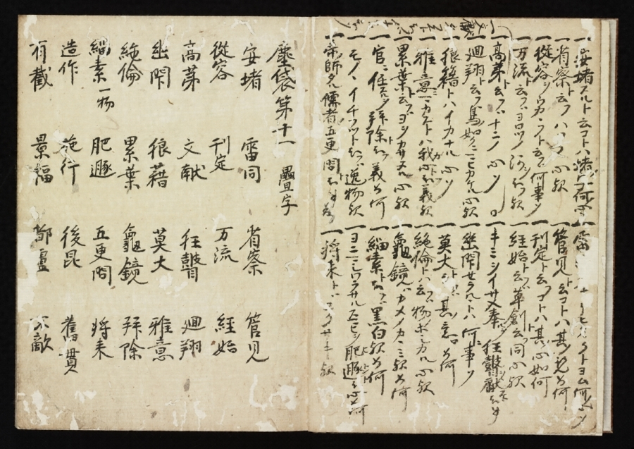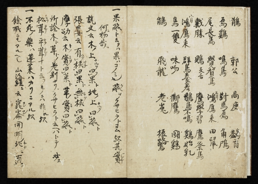 文永・弘安頃成立した類書(類別になった辞書)で、天文年間に編された類書「塵添〓嚢【あいのう】鈔」に一部が収録された以外世にあまり知られず、伝本もほとんどない。本書は永正五年(一五〇八)高野山の学僧印融(一四三五~一五一九)が書写したもので、古辞書の古写完本として珍本である。