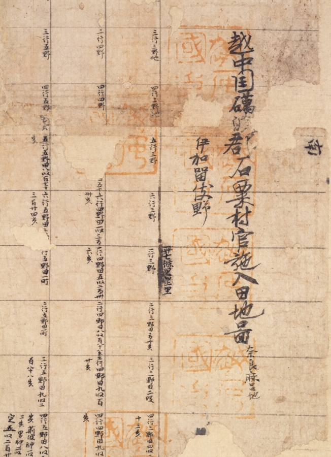 この開田図はいずれも東大寺領越前、越中両国の庄園に関するもので、正倉院に現存する他の開田図と共にもと東大寺に伝来したものである。第一幅の高串村田図は原図作製当時の案と認められ、第二幅の石粟村田図は東を上位とし、石粟村官施入田の條里及び開発状況を図示したもので、左端に天平宝字三年十一月十四日の日付と、東大寺検田使、越中国司官人の位署があり、字面の要所には越中国印十九顆が捺されている当時の原本である。第三幅は神護景雲年間を程遠からぬ頃の案と認められ、第四幅も奈良時代後期の案と考えられる。