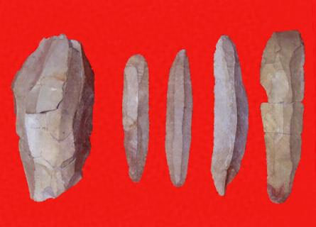 ・出土遺物は、すべて頁岩製の石器で、石刃技法による大形の石刃やエンド・スクレイパー、石核など、縄文時代の石器とは明らかに異なる石器類が出土し、土器は出土しませんでした。