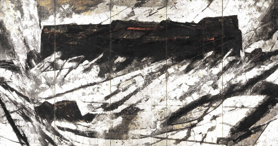 横山操は、新潟県に生まれた日本画家です。昔は越後の国と呼ばれていたところです。葉山館から見える湘南の海は、横山操から見れば、とても明るい海だといえます。この『波濤』という作品も日本海の暗い荒海をイメージして描かれたといえます。黒い岩の塊に激しく荒れ狂った波が襲いかかったさまがダイナミックに描写されています。暗い画面ではありますが、横山操はこの海をこよなく愛しているのです。