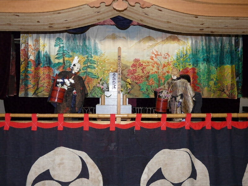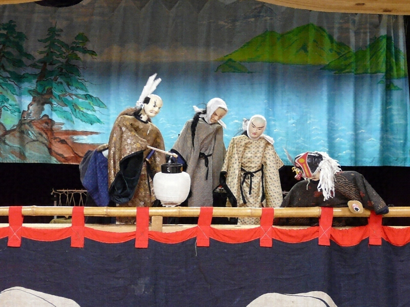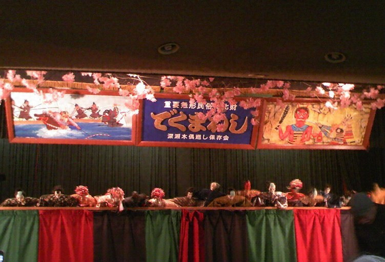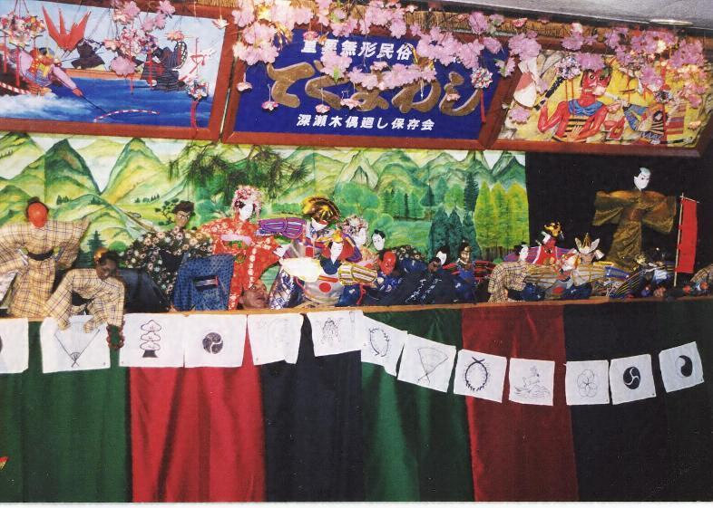 白山麓【はくさんろく】の鶴来【つるぎ】町(ダム建設のため、尾口村深瀬地区の人々が移住した)と尾口村東二口区の二か所に伝承される人形芝居で、文弥人形【ぶんやにんぎよう】、文弥くずしなどと呼ばれる。文弥節による一人遣いの人形芝居で、人形の腰部の後から両手を差し込み、胴串と両手を遣う古い型を残し、また東二口では、ゴロマと呼ばれる間狂言の人形も伝えられている。文弥人形としては、わずかに当地と佐渡などに残るのみで、地方的に特色があり、また芸能史的にも貴重である。上演曲目には「源氏烏帽子折」、「出世景清」など数曲がある。
