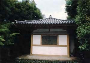 新井旅館当主相原家の持仏堂で,敷地の西北隅に南面して建つ。鉄筋コンクリートで円柱・斗・舟肘木を造り,本瓦葺の宝形屋根を架ける。新潟県出雲崎の良寛堂(大正11年)と形式を同一としていることから,安田靫彦の関与が推測される。
