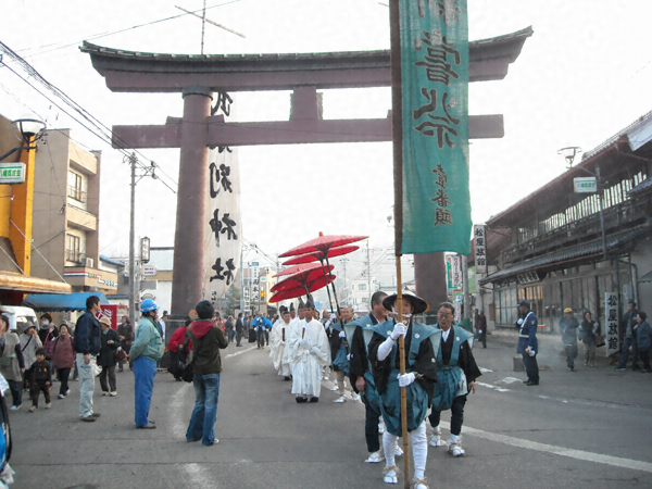 この行事は、更埴市八幡の武水別神社で行われるとうや行事で、予め選出された5人の頭人が、1年間の諸準備、物忌生活を経て、新穀の餅を献供するものである。頭人は、10年間新穀の餅を献供し続け、最上位の大頭を勤めると「大頭筋」と称され、地域社会で高い家格を得た。東日本では珍しい古式のとうや行事である。(※解説は選択当時のものをもとにしています)