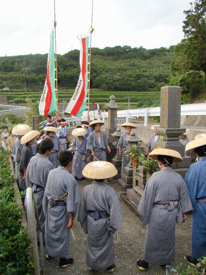 この芸能は、長崎県北松浦郡大島村に伝承されているもので、孟蘭盆会に平戸大島一円―的山【あづち】、東神浦【ひがしこうのうら】、西神浦、西宇土【にしうど】で催される。