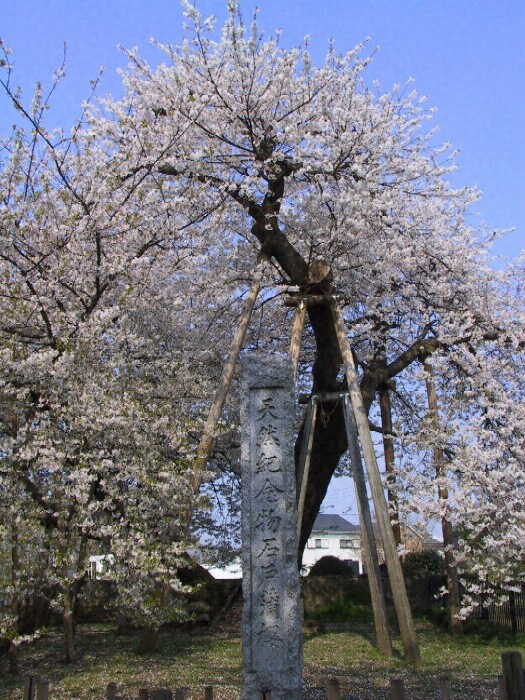蒲櫻 Prunus media Miyos ハ古来著名ノ巨樹ニシテ特殊ノ種類ニ属ス、根元ヨリ四本ノ支弁ニ分ル、根元ノ総周囲三丈六尺、各支幹ノ基部ノ周囲ハ東側ノモノ八尺二寸、北側ノモノ一丈六尺西側ノモノ八尺五寸、南側ノモノ一丈三尺アリ