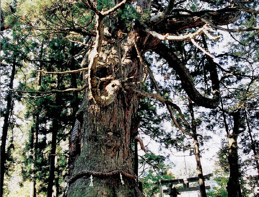 目通幹圍約一〇.六メートル樹勢旺盛杉ノ巨樹トシテ有數ノモノナリ