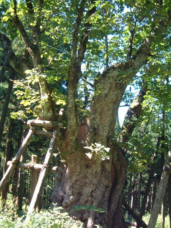 本州中部の多雪地帯に位置する白山の麓にも、このトチノキは多い。加賀平野を北流して日本海に注ぐ手取川は、上流部で幾本もの支流をもつ。それらの支流はさらに大小の枝谷を幾本ももつが、そのひとつが石川県白峰村大道谷地区の太田谷である。この谷の林道脇に、「太田の大栃」の名で土地の人の間で親しまれかつ敬われてきたトチノキの巨木がある。この巨木は目通り幹周が13メートル、高さ25メートルあって、威風を放っている。主幹上部はすでに失なわれて久しいが、地上10メートルほどの位置で分岐する5本の太い幹からは太い枝が垂直に伸び、その樹勢はなお衰えていない。残る巨幹の内部は大人が20人も入ることができる洞となっている。かつてこの地方では焼き畑を中心とする出作り耕作が盛んであったが、「太田の大栃」の周囲でも昭和30年代中頃まで耕作が営まれ、その後は杉が植栽され現在に至っている。明治初期には太田谷で45軒もの出作り農家があったことが確認されている。当時トチノキが食料源として大切であったことは先に記したとおりであるが、そのトチノキの巨木である「太田の大栃」はシンボルでもあり、大切に崇められ、保存されてきた。この樹にまつわるいくつかの説話からもそのことが容易にうかがえる。