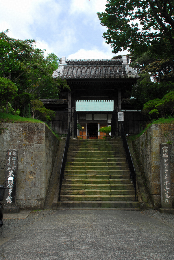 玉泉寺は、もと草庵に過ぎなかったが元祿年間に改築され次いで嘉永元年現在の地に移築された。安政元年下田追加条約が締結されるやこの寺をアメリカ人の休息所となし、寺域内に同国人の墓地を設けることが、定められたが同三年八月アメリカ総領事タウンゼント、ハリス下田に上陸して、此寺に館し同月九日初めて同寺に領事館旗を掲げ以后同六年六月迄領事館として存續した。本堂間口七間奥行六間寄棟造よりなり、内部にはハリス居室・次の間・通辯官ヒュースケン居室・次の間及び事務室の室割をなしよく当時の規模を伝えてをり、幕末外交史上重要な史跡である。