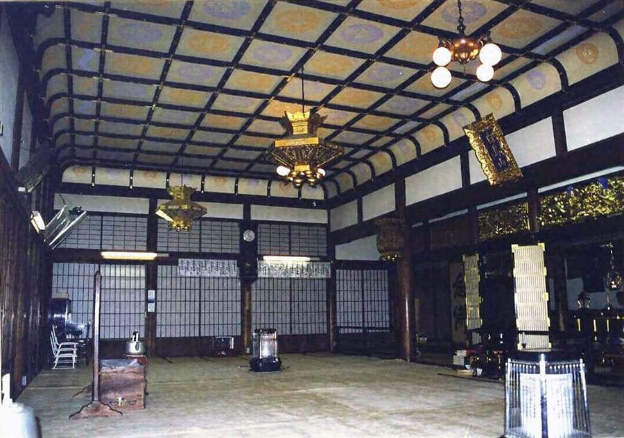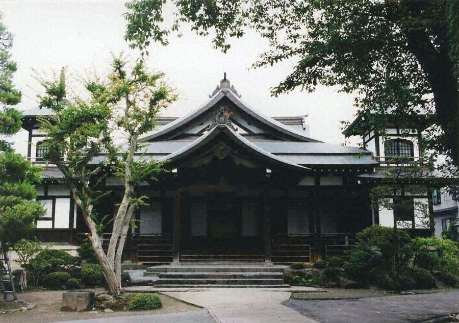 伊東忠太の設計による。内部は前半部を60畳敷の大広間とし,後半部は中央に内陣を設け,両脇を餘間とし,左奥に書院間を張り出している。正面両脇に鐘楼・鼓楼を設け,向拝と入母屋の妻面を重ねて見せる立面に,伊東の作風が良く表れている。