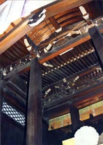 三間社流造で屋根正面に千鳥破風と軒唐破風を付ける組物は身舎を軒支輪付の出組、庇を三斗組とする。身舎庇ともに実肘木に大仏様の繰形を施し、蟇股や木鼻の形態も古式である。透塀越しに望めるように床を高めている。設計は奈良の吉田種次郎と伝える。