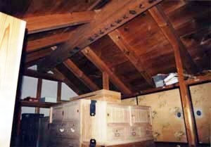 主屋のすぐ裏に建つ。2階建,土蔵造,切妻造,妻入,桟瓦葺で,南面戸口に庇を付ける。両側面に半間毎に柱を立て,これと等間隔に配された大引,登梁とで架構を組み,登梁頂部は地棟で受ける。外部は庇柱,桁,繋梁も漆喰で塗込めた丁寧で堅牢な造りとなる。