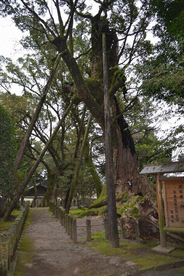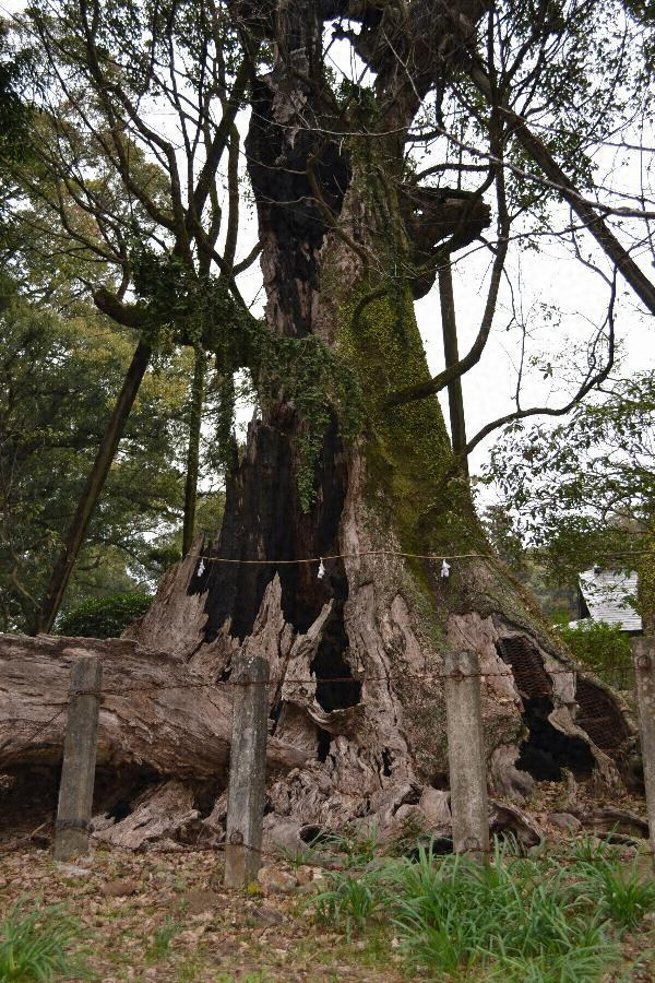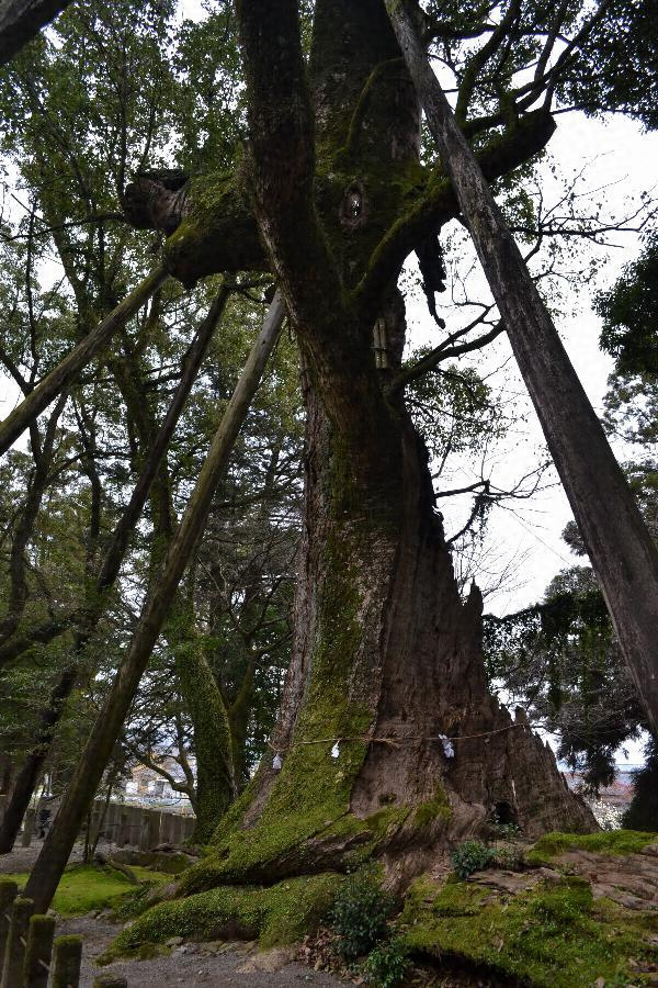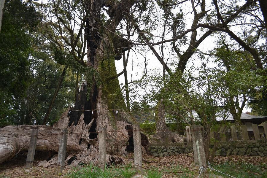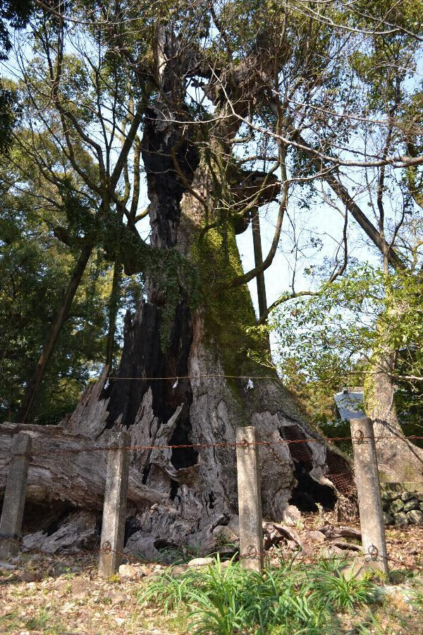 都満神社境内にあり根廻り16.40メートル、北側は南側より90センチメートル高く高地面から測った目通り幹囲約10.30メートル、主幹は4メートルの高さで太い一枝を南東に出し本幹は15メートル以上で数支幹に分かれ枝葉繁茂し高さ約40メートル、樹勢すこぶる旺勢、枝張り東西24メートル、南北34.30メートル、クスの巨樹として有数である。