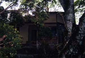 白雲洞などに至る苑路の最も手前にあり,これらの茶室の寄付となる建物で,4畳半の南東隅を欠いた変形平面の座敷と2畳の次の間からなる。筋違に欠いた南東部分は,湾曲した丸太の桁を用い,扇状に小丸太の垂木を配して化粧軒を造る巧緻で斬新な意匠となる。
