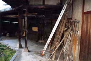 屋敷の北側,納屋に連続して建つ。平屋建,本瓦葺で,平面は細長い矩折れになり,漬物納屋部分は真壁造の1室とするが,ほかは水路側を荷揚用の門と壁,屋敷内側を吹放しとする。大量の物資を扱った商家に欠かせない施設で,屋敷後方の景観も構成している。