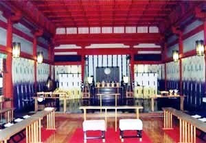 南内庭東側に位置し,東外廻廊と東側で接続する。基壇を設けて桁行8間,梁間4間の丸柱を建て,南,西,北の3面1間通りを吹き放しとする。屋根は入母屋造,本瓦葺。神楽の奉奏とともに結婚式等を行う場として建てられたもので,広く親しまれている。