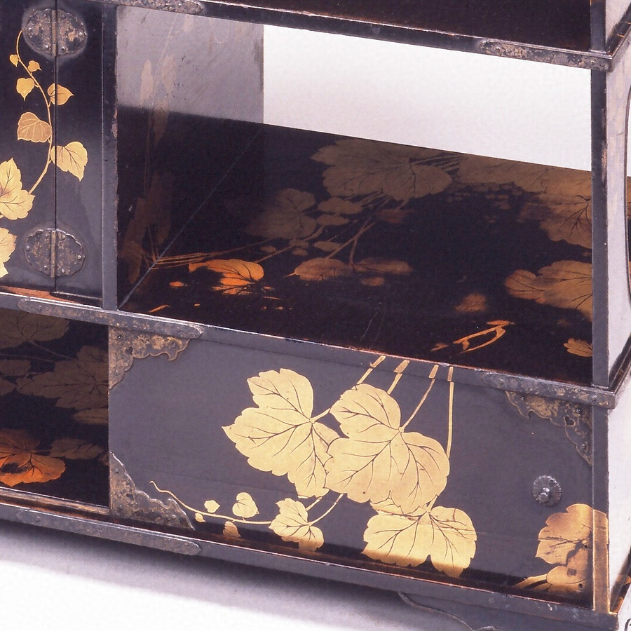 厨子棚としての形態、蒔絵技法、図様表現等に、桃山時代の特徴を顕著に示す作行優れた蒔絵棚である。