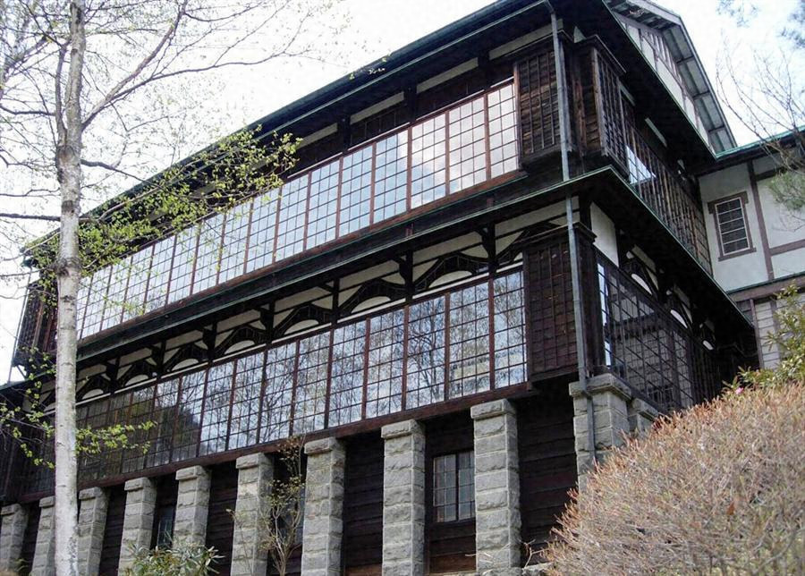 渡良瀬川の右岸段丘上に位置し,川に面した東面は石積の柱を現して懸造り風につくる。桁行17m,梁間12m規模,切妻造,鉄板葺の木造2階建で,南に厨房等,西に平屋建の球技室を張り出し,2階をハーフティンバー風にするなど変化に富んだ外観をつくる。