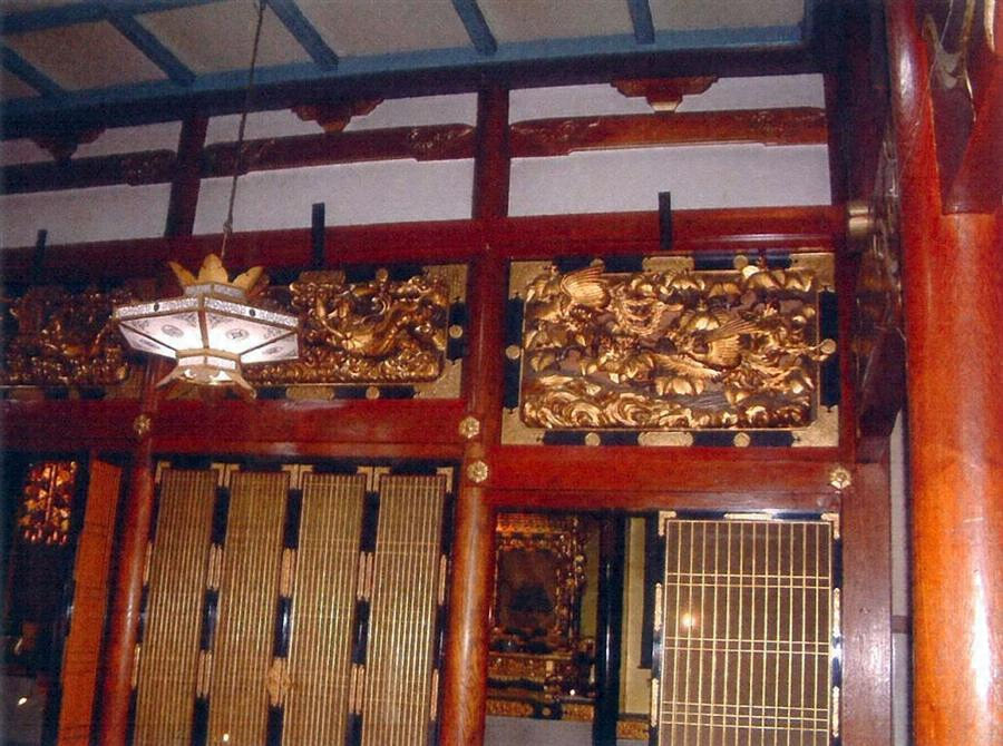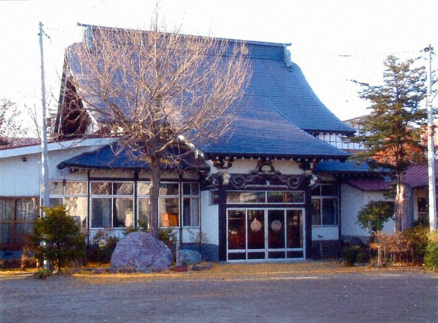 境内奥寄りに東南に面して建つ浄土真宗本堂。桁行7間,梁間7間,正面向拝付,切妻造,鉄板葺。内部柱を円柱とし,外陣では入側柱を成の高い虹梁で固める。内外陣境の彫刻欄間の上部にも絵様虹梁と大斗実肘木を入れ,全体に堅牢で華やかなつくりとする。