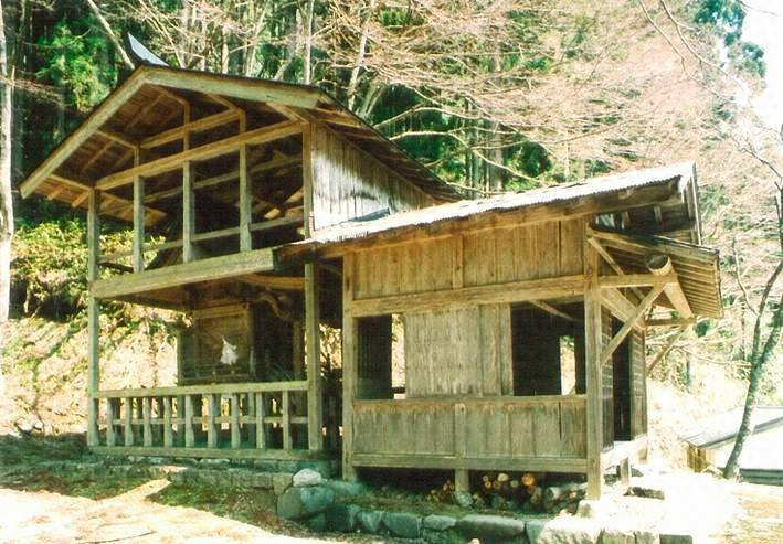 本殿前面にある拝殿は,切妻造,妻入,正面と背面に格子戸,中敷居を入れた両側面に板戸を配し,組物や装飾のない簡素な形式である。覆殿は,吹放しの軸部を一段高く組んで,棟を拝殿と直交させる。集落を見渡す高台にあって,存在感のある形態を見せている。